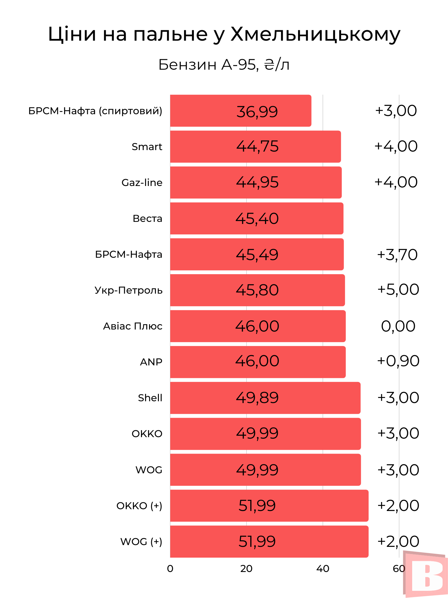 Ціни на АЗС Хмельницького: як змінилися та де дешевше (ІНФОГРАФІКА)