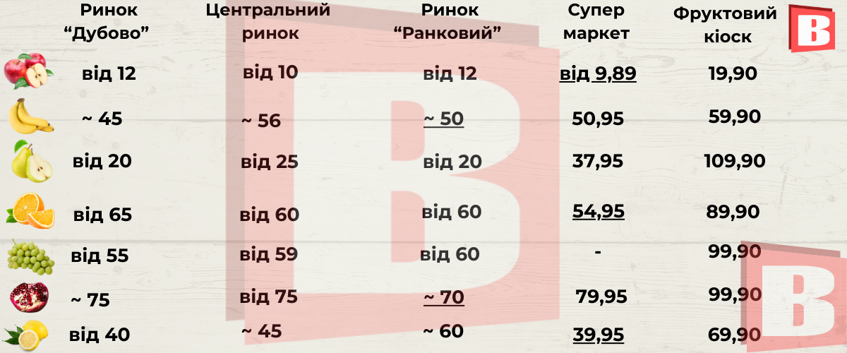 Ціни на фрукти у Хмельницькому: де вигідніше (ІНФОГРАФІКА)