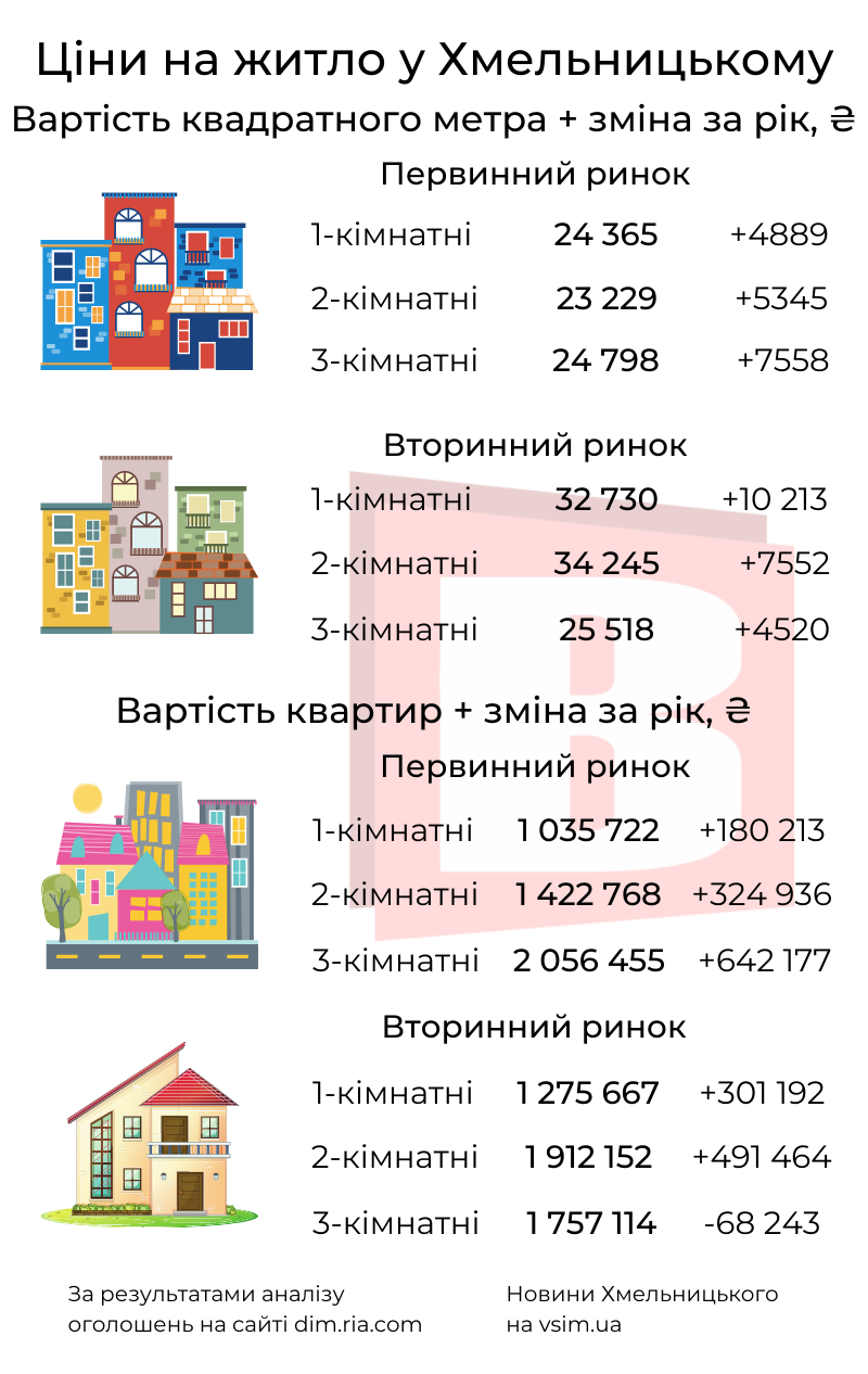 Ціни на квартири у Хмельницькому та зміни за рік (ІНФОГРАФІКА)