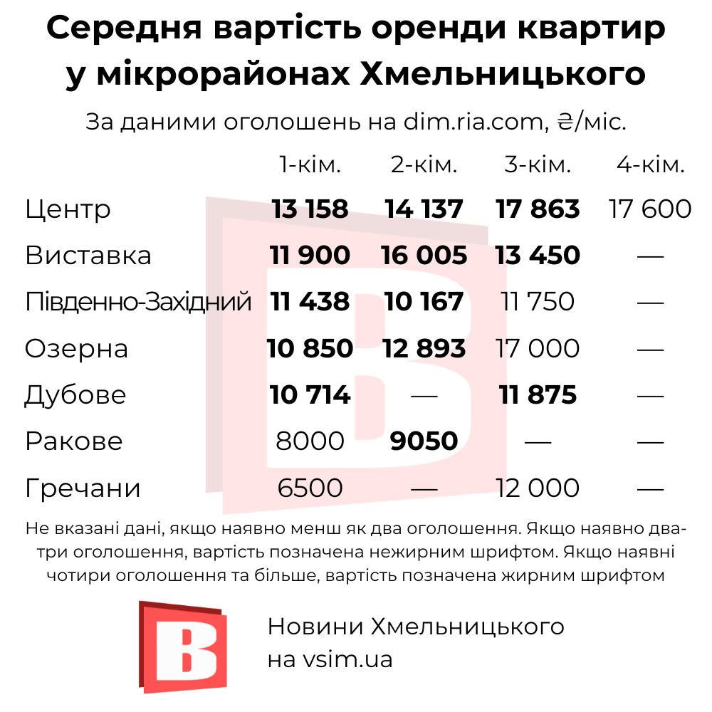 Ціни на оренду житла у мікрорайонах Хмельницького (ІНФОГРАФІКА)