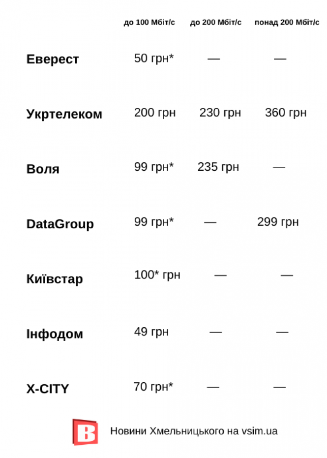 * Ціни вказані за умовами акцій, які пропонують провайдери. У тексті вище пояснено, якими будуть тарифи після їх завершення.