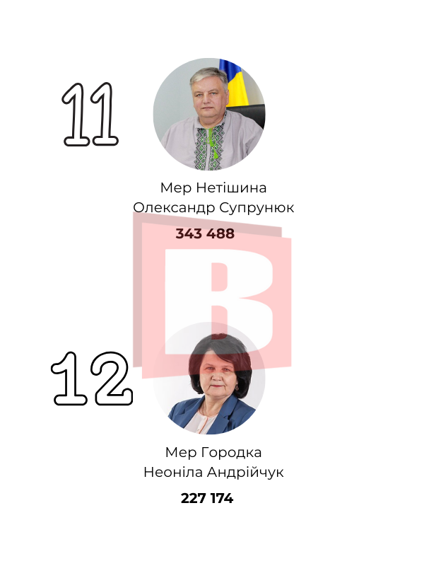 Найменше ж у 2024 році заробив міський голова Нетішина та Городка.