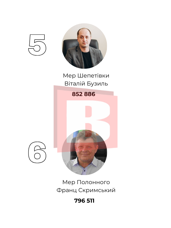 Детальніше рейтинг зарплат переглядайте далі, в інфографіці. Додамо, що в ньому відсутній мер Кам’янця-Подільського, Михайло Посітко. Його декларація відсутня в публічному доступі. Раніше він пояснював причину. Мовляв, його дружина є військовослужбовицею, тому декларації й прибрані з відкритого доступу.