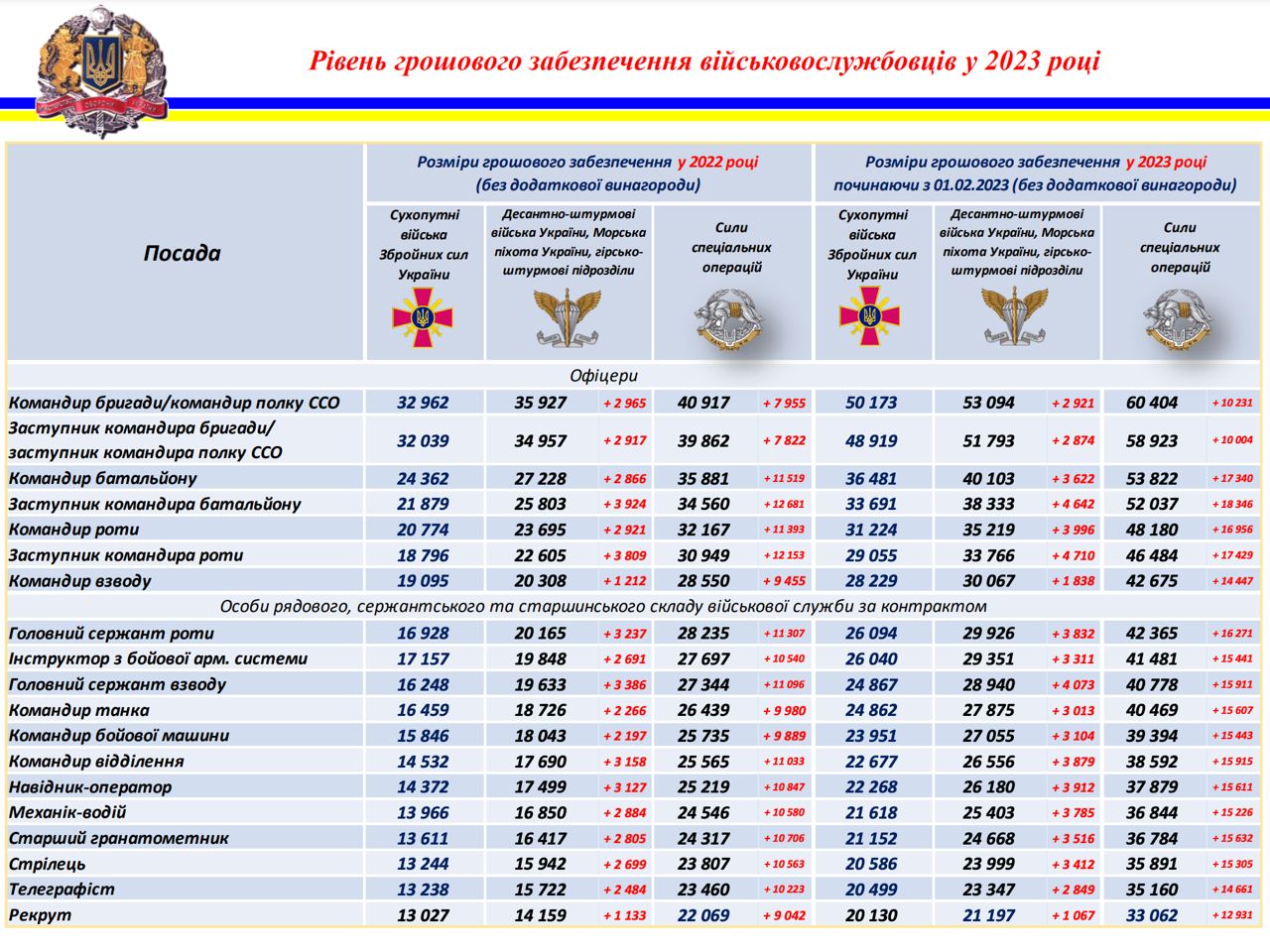 Зведені таблиці про середній рівень грошового забезпечення опублікувала 1 березня прес-служба командування Сухопутних військ.