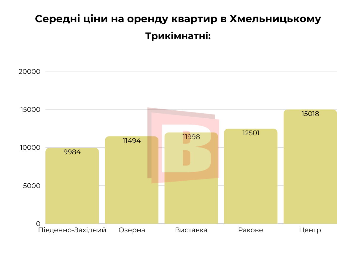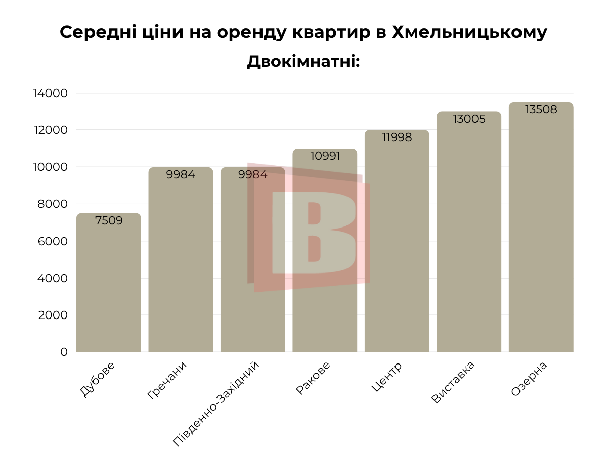 Середня вартість оренди житла в Хмельницькому складає 13 424 гривні.