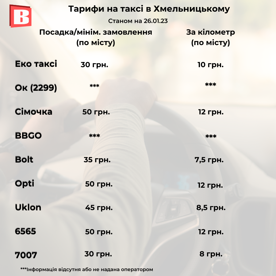 Журналістка vsim.ua дізналася актуальні ціни у службах міста. Згодом порівняла вартість проїзду за двома однаковими маршрутами: Інститутська, 8 – залізничний вокзал та Довженка, 10 - McDonald’s. Таким чином, визначила, яке таксі є вигіднішим для хмельничан.