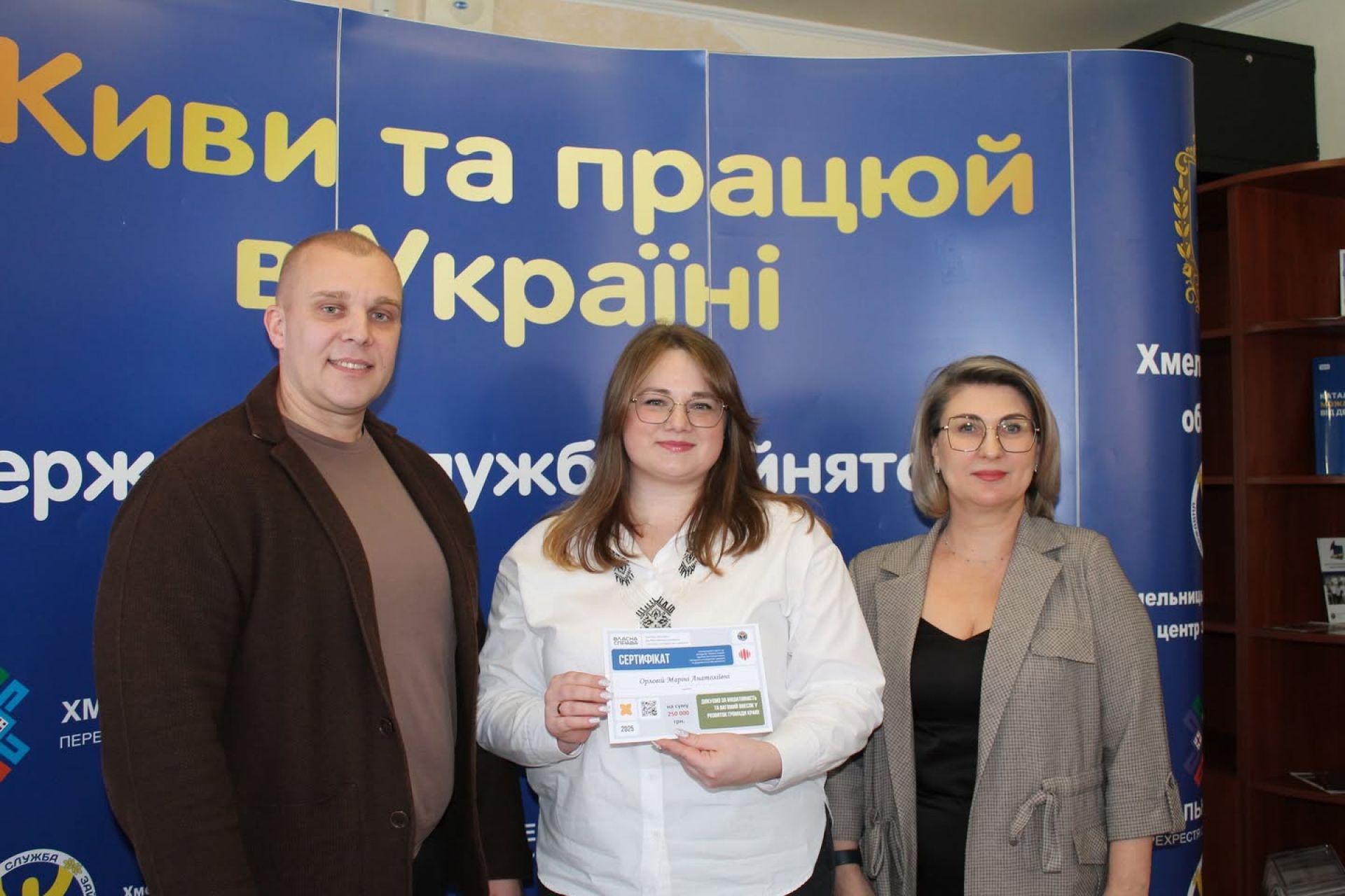 Так, підприємці брали участь в урядовій програмі «єРобота: «Власна справа» та «Грант для ветеранів та членів їхніх сімей». Вони успішно захистили свої бізнес-плани та отримали сертифікати, що підтверджують надання їм грантів у межах цієї державної програми. За результатами відбору переможцями стали 14 підприємців і 4 учасника бойових дій та їхні дружини. Вони відкриють равликову ферму, масштабують салон студії краси і медичний кабінет, будуть надавати послуги з пошиття одягу та відкриють магазин кондитерських виробів тощо. Завдяки цим проєктам буде створено 32 нових робочих місця у Хмельницькій області.