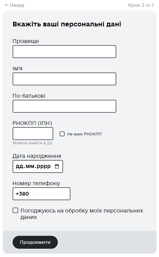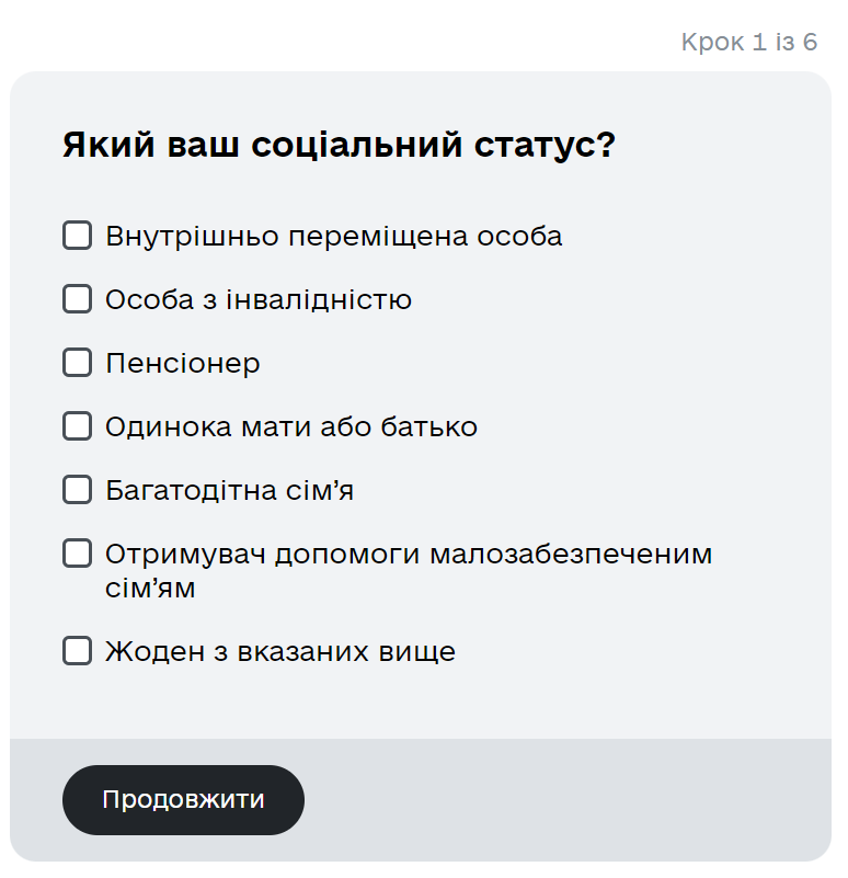 Збір даних передбачає надання відомостей про заявника та членів сім’ї (дітей та недієздатних осіб), а саме: