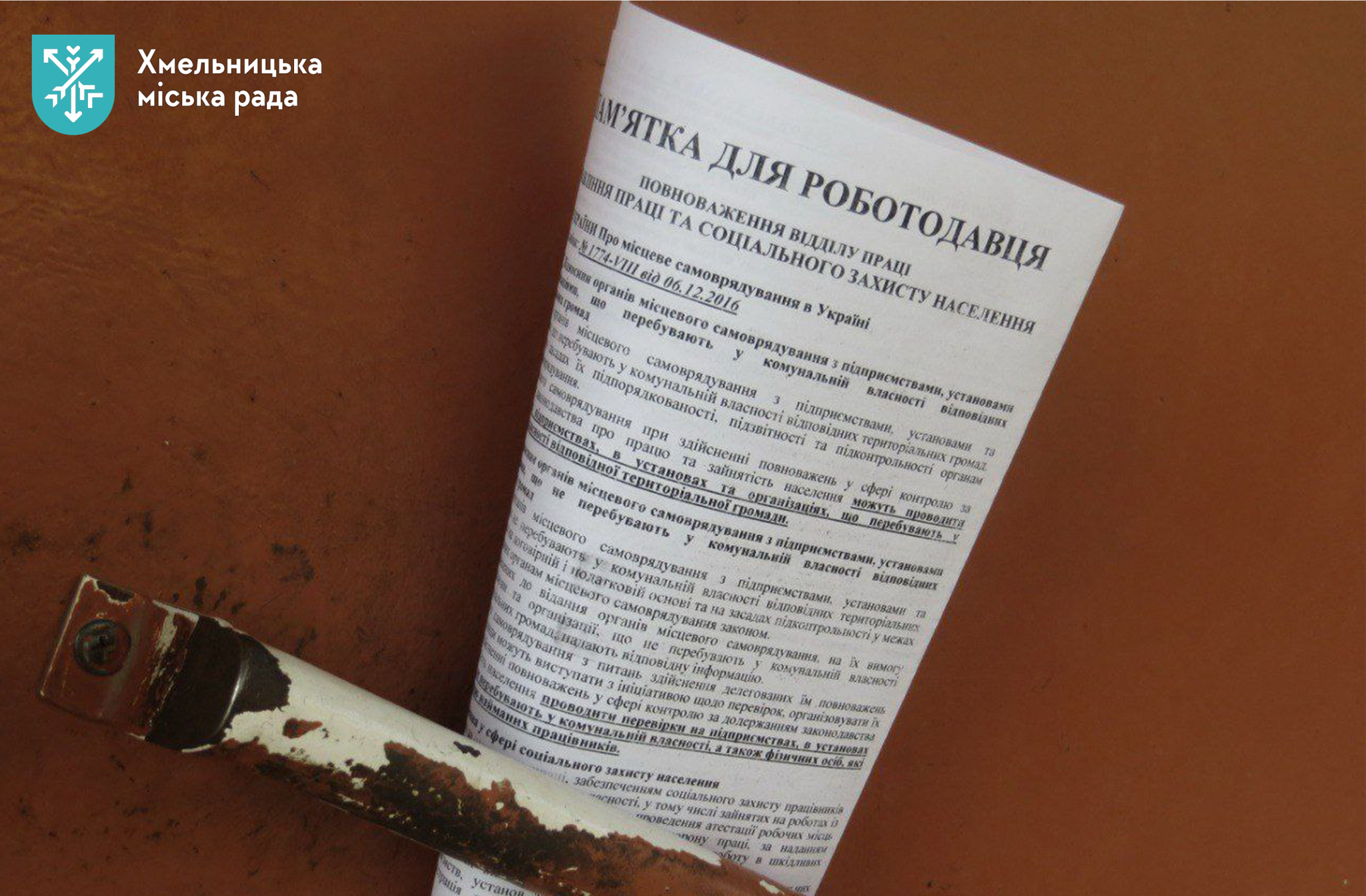 З початку 2024 року у Хмельницькому оформили 192 працівників, які до того працювали неофіційно. Таким є результат роботи управління праці та соціального захисту населення міської ради, чиновники якого проводили роз'яснювальну роботу та підприємствах. Загалом відвідали 2000 об'єктів, серед яких магазини, заклади громадського харчування, перукарні та салони краси, торгові центри, виробничі приміщення, швейні цехи тощо. Про це повідомили на сайті Хмельницької міської ради.