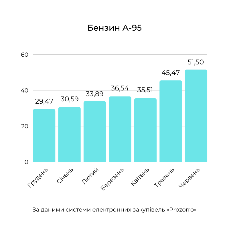 Як бачимо, протягом грудня-квітня ціни були більш менш стабільними. У травні та червні почалося різке зростання. Бензин А-95 у червні купували по 51-52 гривні за літр, А-92 — по 51 гривні, дизель — по 57 гривень. Це ледь не удвічі дорожче за грудень.