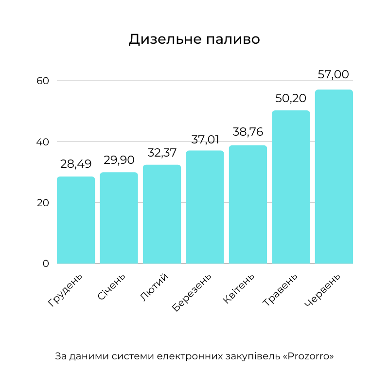 дизель — 42 гривні за літр (замовник КП «Хмельницький міський перинатальний центр», постачальник ТОВ «Лівайн Торг», загальний обсяг 200 літрів)