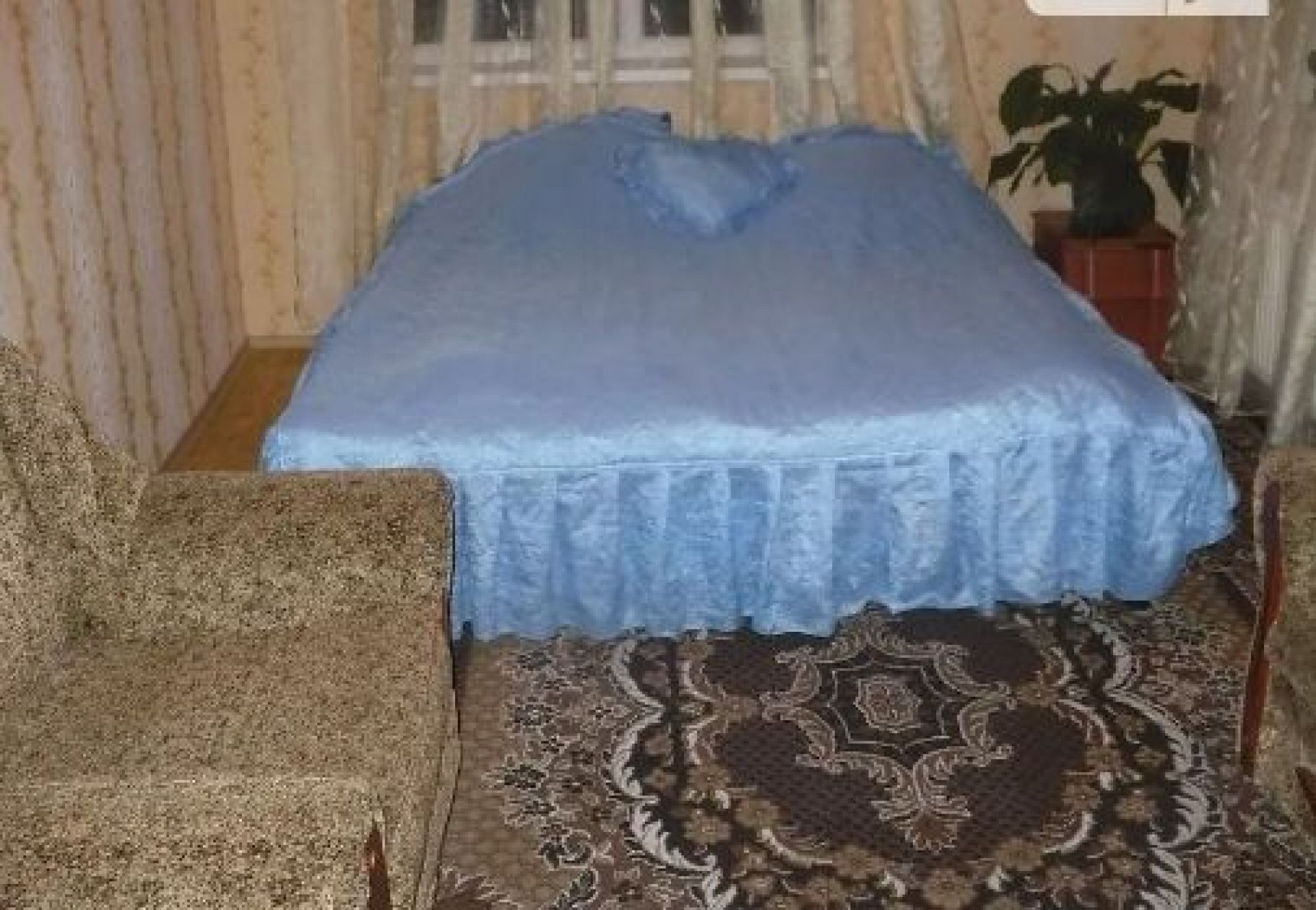 Двокімнатна квартира на Зарічанській. Знаходиться неподалік зупинки “Думка”. Ціна за добу - 450 гривень. Є 5 спальних місць. В оголошенні вказано, що квартиру здають лише порядним людям. У новорічну ніч оренда коштуватиме 4-5 тисяч гривень. Такою буде ціна за умови здачі для двох осіб.
