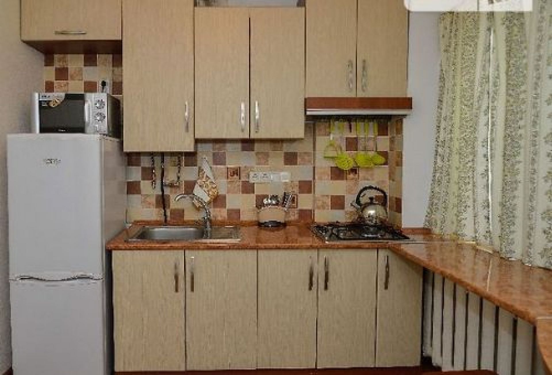Квартира на Зарічанській. У порівнянні з попередніми ремонт тут скромніший. Ціна за добу - 300 гривень. Є 4 спальних місця. Здача можлива при наданні документів, що засвідчують вік орендарів. Вартість оренди в новорічну ніч - 3 тисячі гривень.