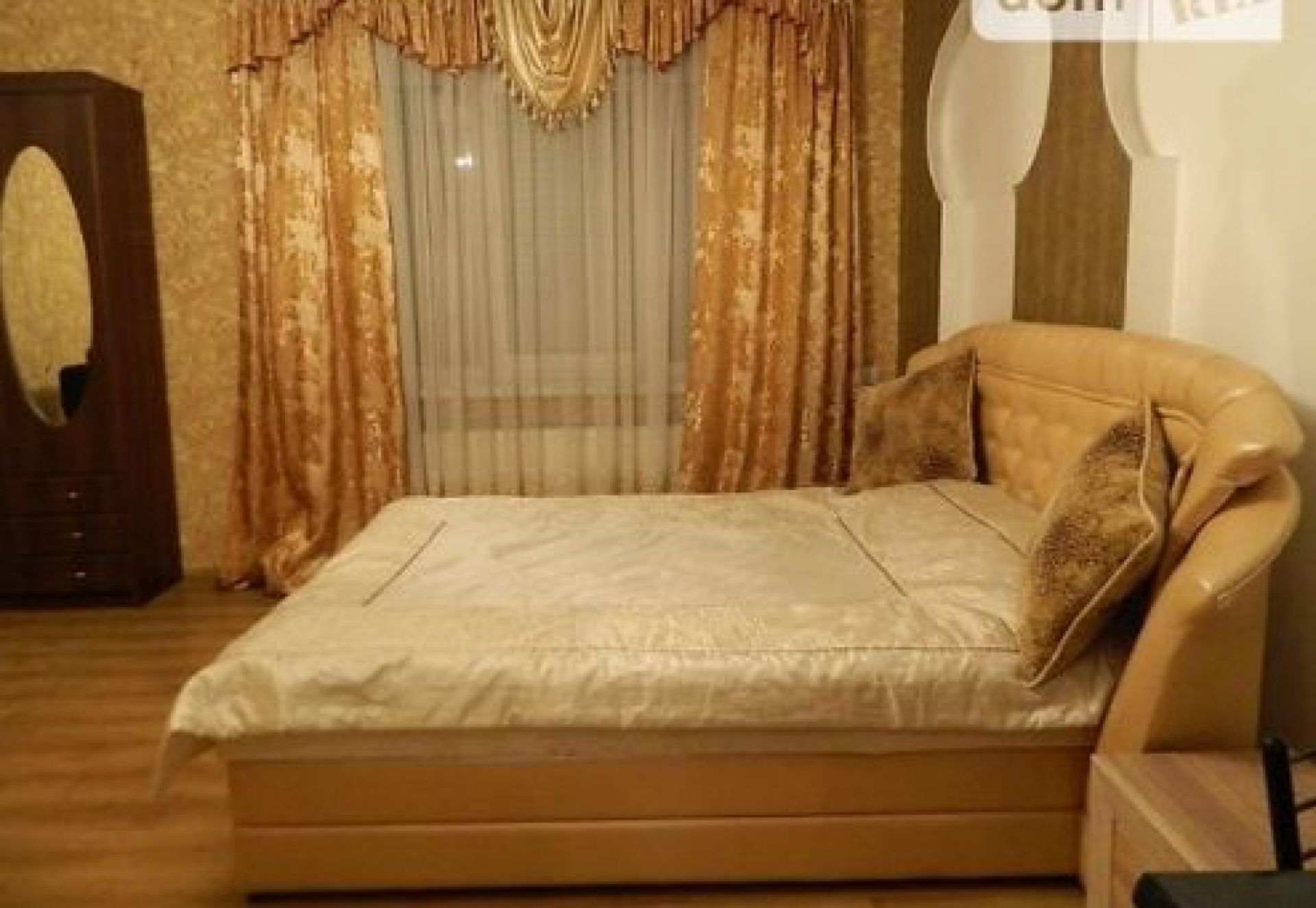Однокімнатна квартира на Озерній. Знаходиться на вулиці Панаса Мирного. Вартість за добу - 300 гривень. В описі вказано, що ремонт виконаний в східному стилі. “Шкіряне двоспальне ліжко з ортопедичним матрацом. Над ліжком підсвічування - дуже романтично”, - зазначено в оголошенні. Вартість оренди на Новий рік - 2 тисячі.