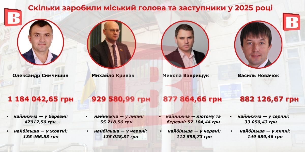 Зарплата Симчишина та заступників у 2025 році: скільки отримали посадовці Хмельницького (ІНФОГРАФІКА)