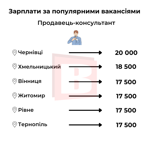 Найпопулярнішими вакансіями у містах України є продавець-консультант, військовослужбовець, менеджер з продажу, водій та адміністратор. Ми порівняли, скільки платять у Хмельницькому та містах-сусідах. Підготували інфографіку. Тож дізнавайтеся, де й кому пропонують найвищу зарплатню, далі в матеріалі.