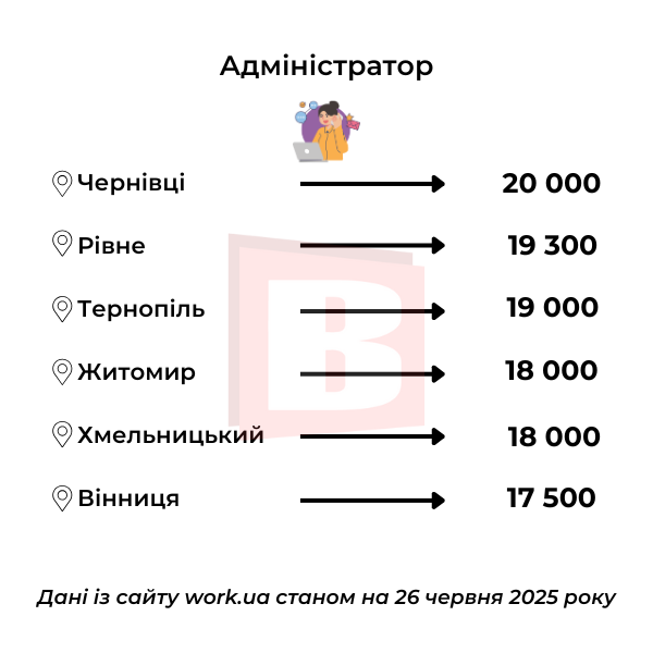 Станом на 26 червня, 2025-го, середня зарплата в Хмельницькому складає 22 500. У порівнянні з аналогічним періодом минулого року, вона зросла на 25%. Такими є відомості work.ua, розраховані за даними з 3 282 вакансій, що розміщені протягом останніх трьох місяців.