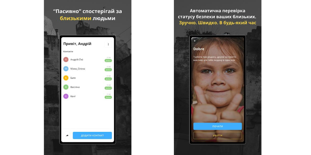 Додаток називається “Dobre”. Він допомагає дізнатися інформацію про рідних з окупованих або небезпечних територій. Додаток працює навіть за слабкого сигналу мережі оператора.