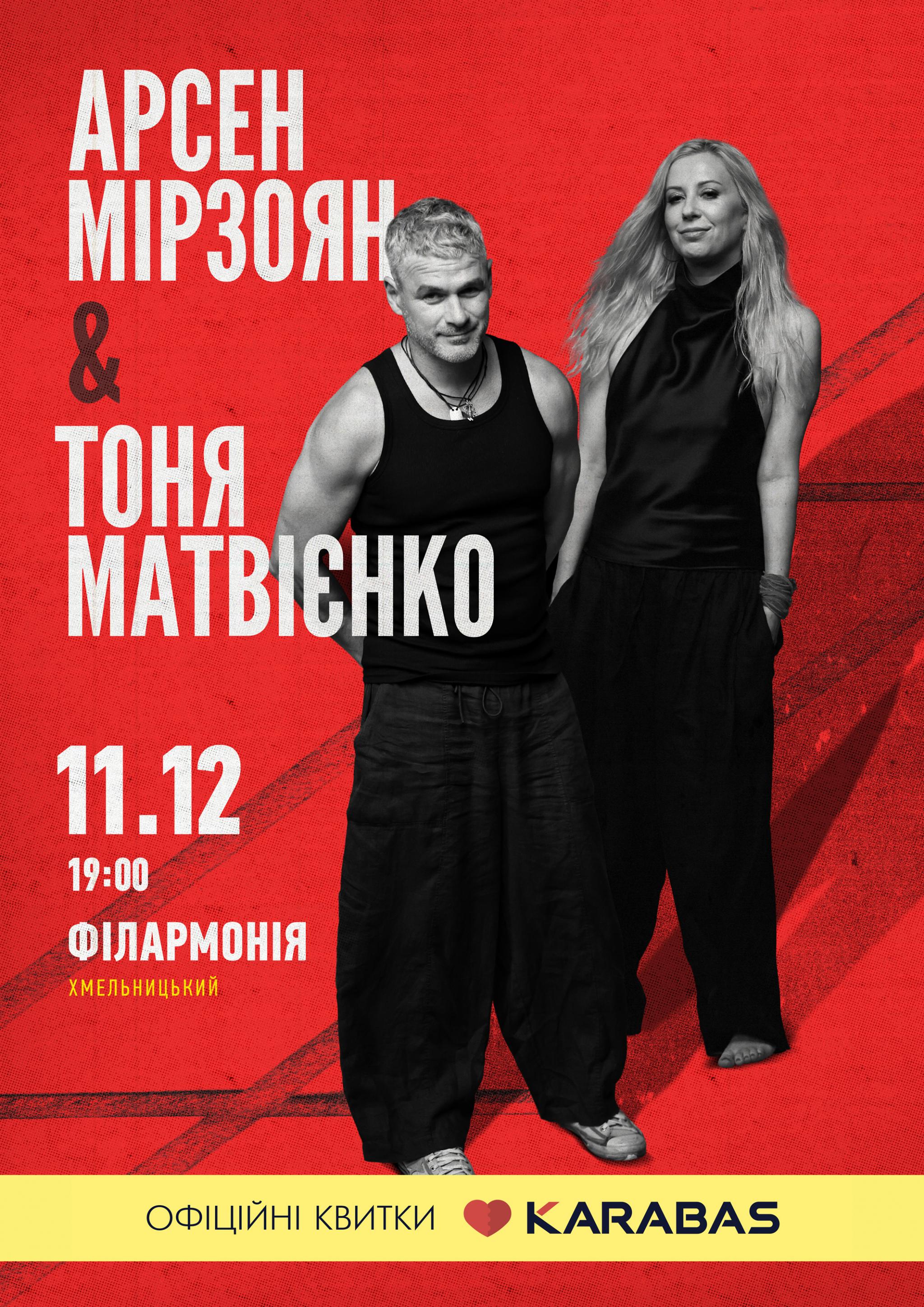 Арсен Мірзоян і Тоня Матвієнко 11 грудня виступлять у Хмельницькому! (новини компаній)