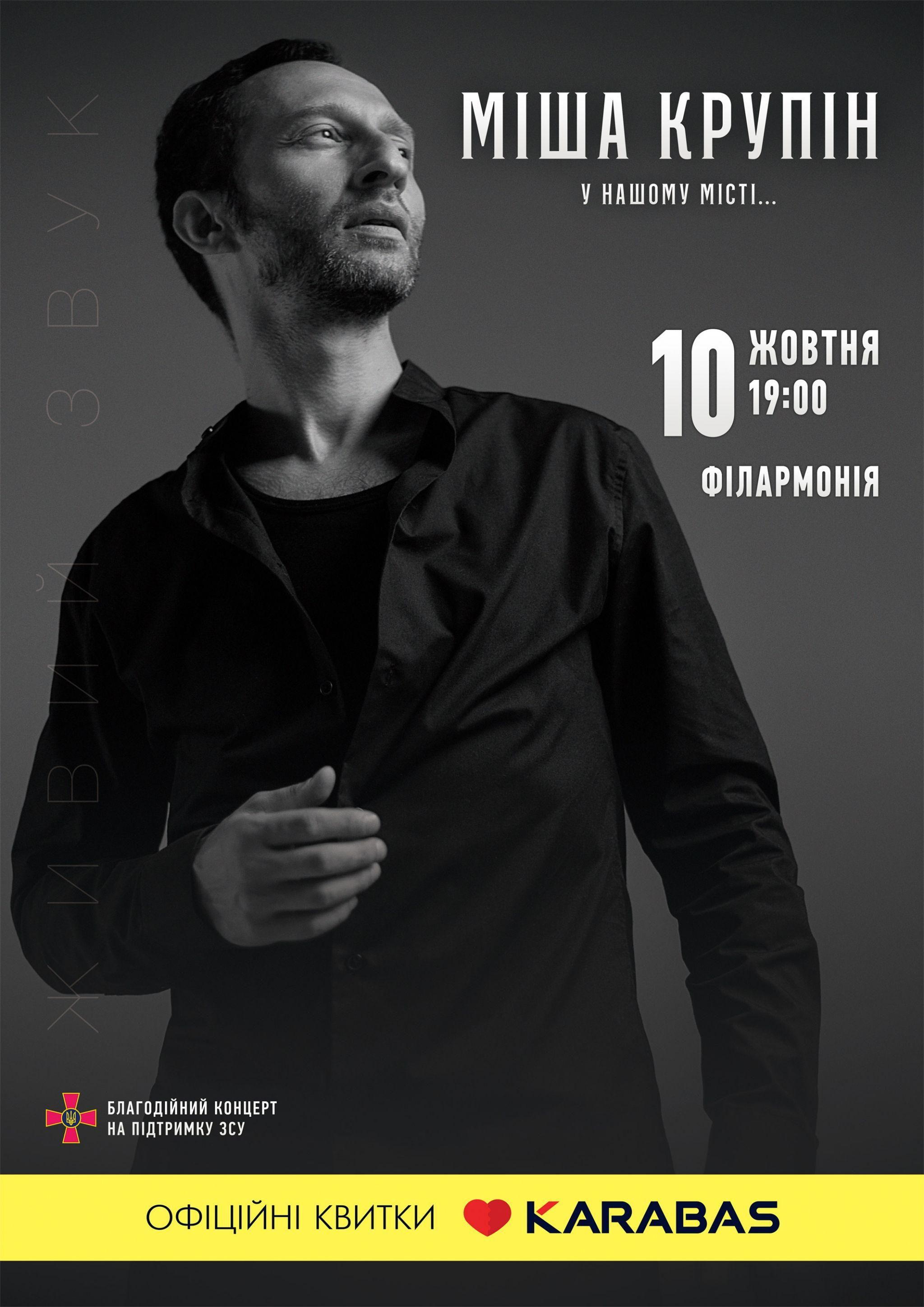 Великий сольний концерт Міші Крупіна, що пройде 10 жовтня о 19.00 у філармонії, буде сповнений феєрії драйву та емоцій, і водночас — стане щирою атмосферною зустріччю давніх друзів. Одкровень і сюрпризів буде чимало!
