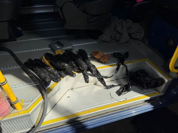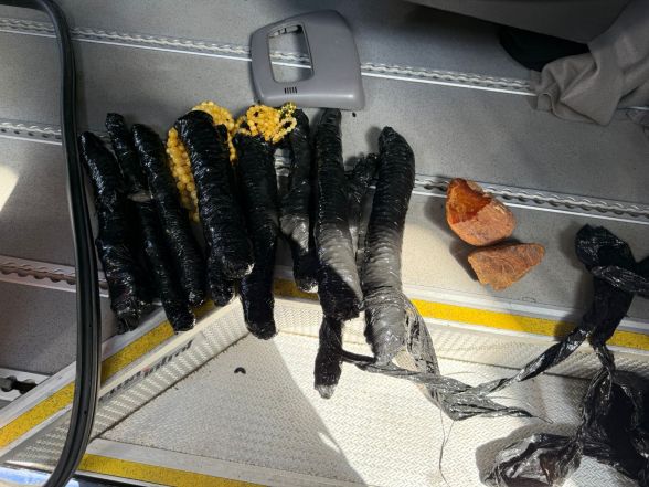 Тут розповіли: під час огляду автомобіля Mercedes, за кермом якого перебував 25-річний житель Хмельниччини, правоохоронці знайшли схованку. Каміння було заховане безпосередньо у передніх сидіннях машини та щільно замотане у чорний поліетилен.