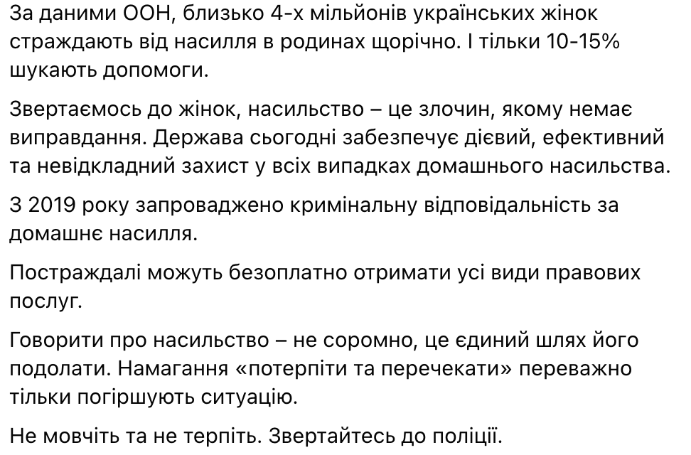 Правоохоронці відповідально ставляться до заяв про домашнє насильство і закликають жінок його не приховувати. До прикладу, про це йдеться в коментарі у Facebook Шепетівського районного управління поліції: