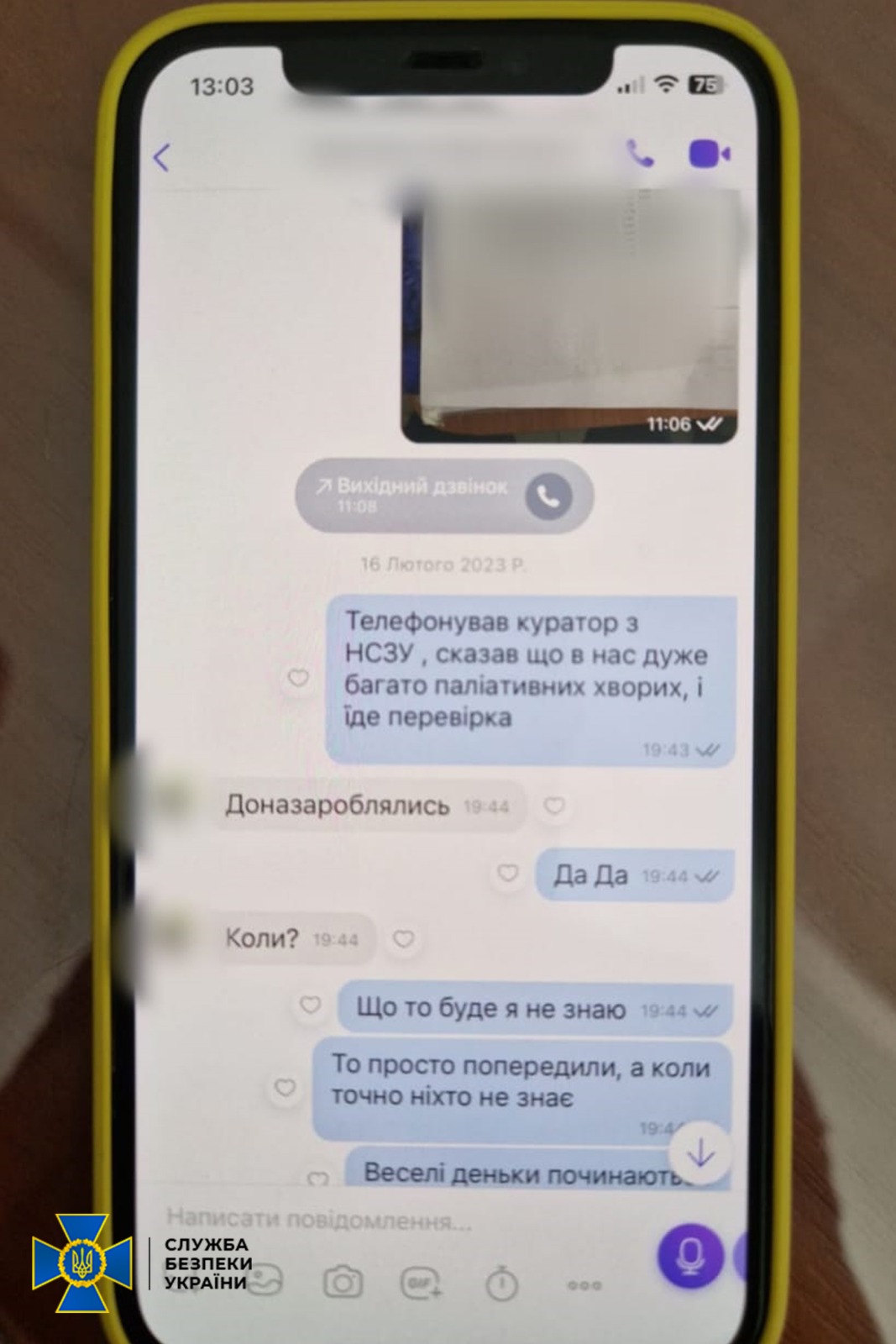 Там ідеться, що НСЗУ знала про надто велику кількість паліативних пацієнтів та попередила про перевірку. Далі діалог дослівно: