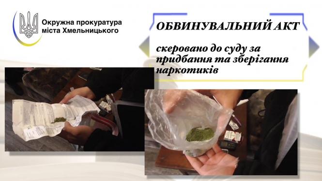Обвинувальний акт у кримінальному провадженні за статтею “Незаконне придбання та зберігання наркотичних засобів, без мети збуту” вже скерували до суду.