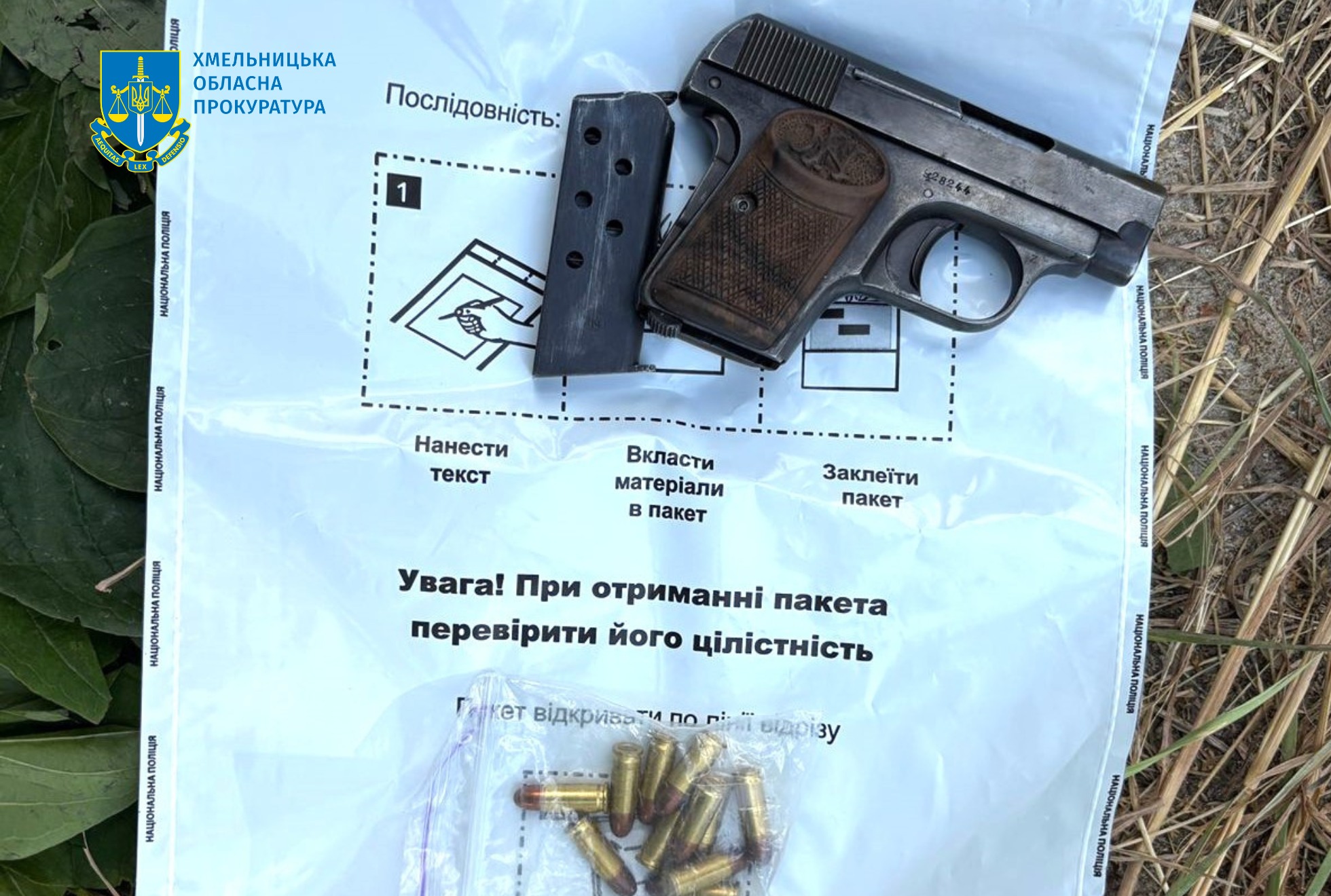 Чоловіка затримали під час продажу бойового пістолета «Browning» та набоїв до нього. Походження зброї та вибухівки встановлюється.