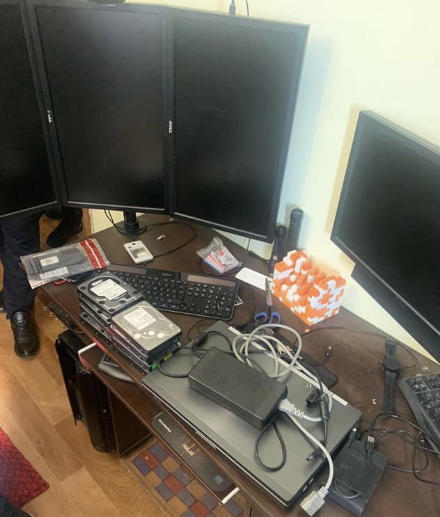 У нього вдома знайшли мобільні телефони, три десятки жорстких дисків, SIM-карти, комп’ютерну техніку та серверне обладнання, на якому кіберполіцейські виявили бази даних з обмеженим доступом. Наразі встановлюється походження цих баз.