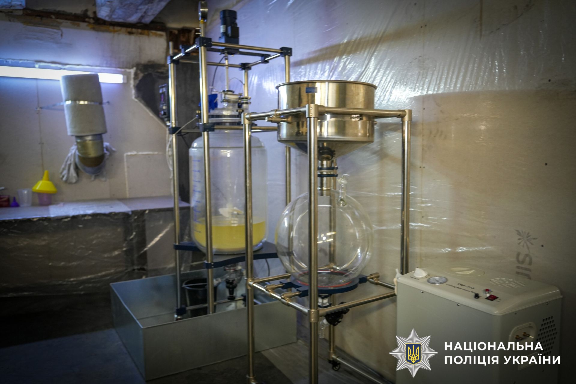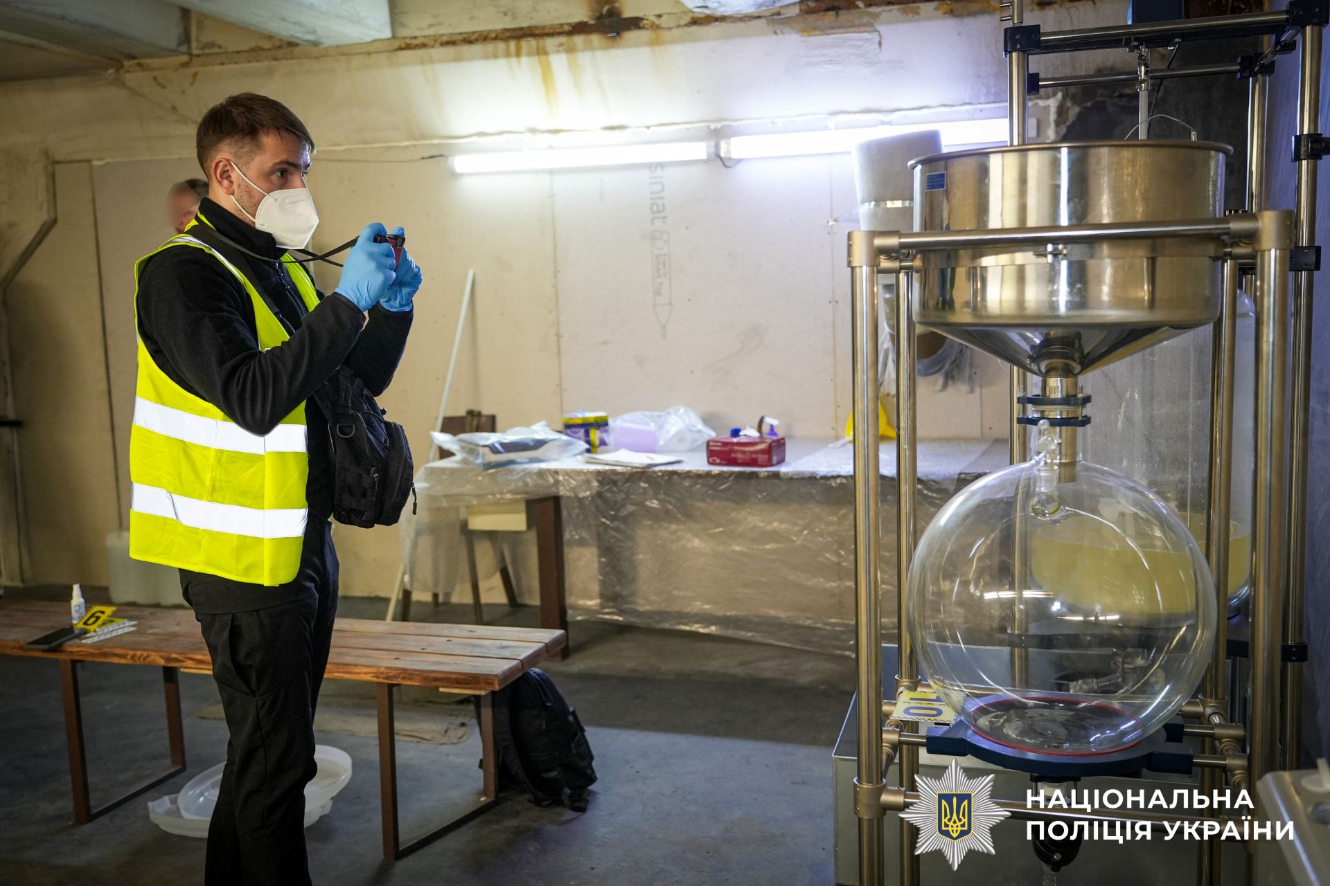 Під час обшуків за місцями проживання учасників, на складах і в лабораторіях, поліцейські вилучили лабораторне обладнання, реактори, вибухівку, тисячі літрів хімічних речовин і прекурсорів, а також близько 30 кілограмів солей альфа-PVP.
