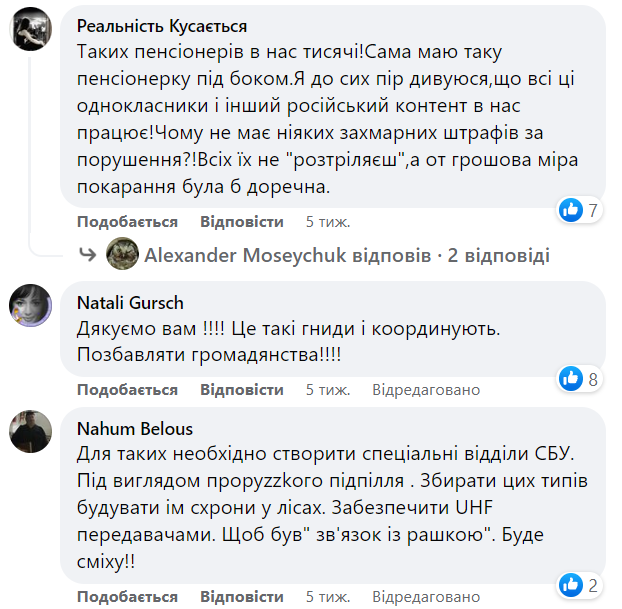 Натомість у коментарях хмельничани висловлюють власні побажання як можна карати колаборантів та тих, хто досі "сидить" в російських соцмережах: