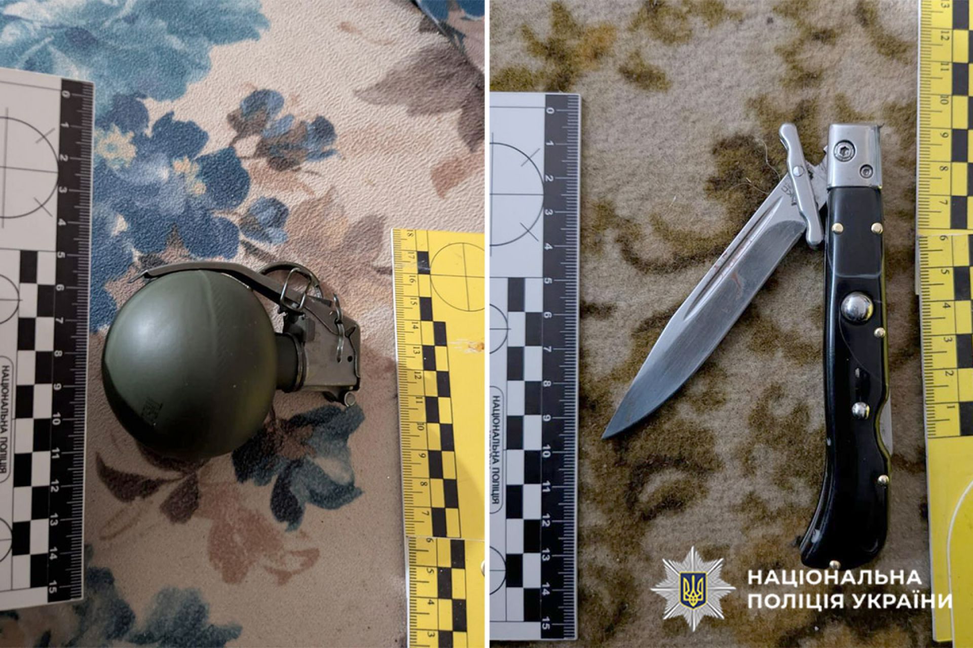 Під час санкціонованого обшуку поліцейські вилучили ніж, а також ручну наступальну гранату М-67 із підривачем. Предмети направили на експертизу.