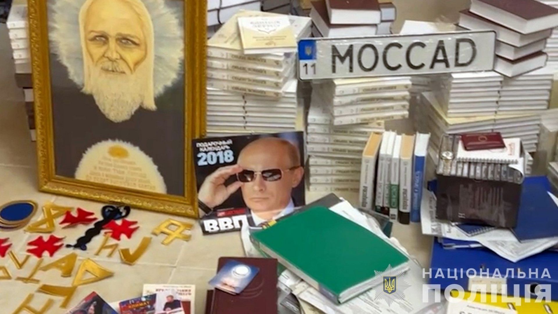 Знайшли чимало проросійської літератури, окультну символіку, портрети путіна, російські рублі і зброю.