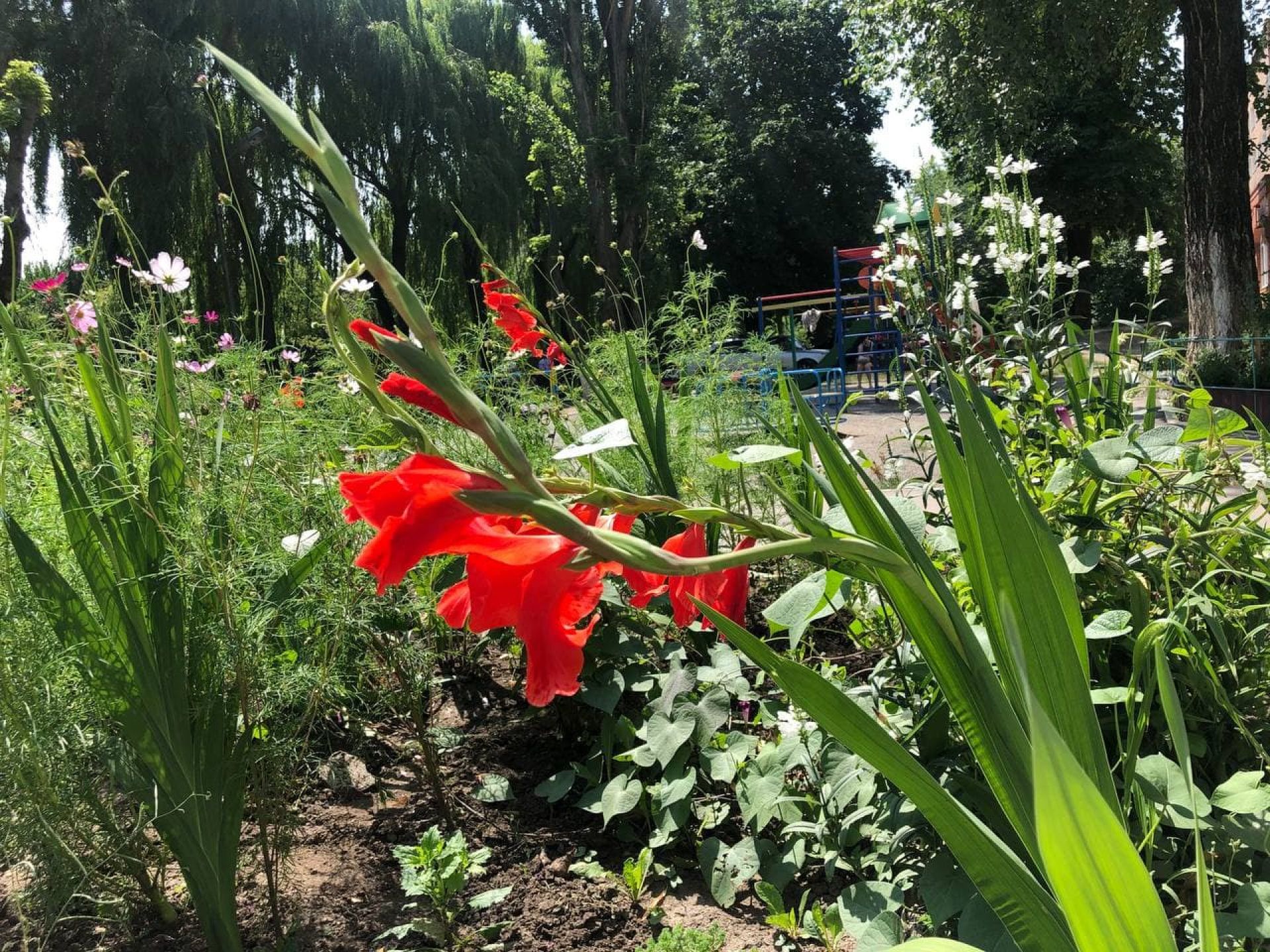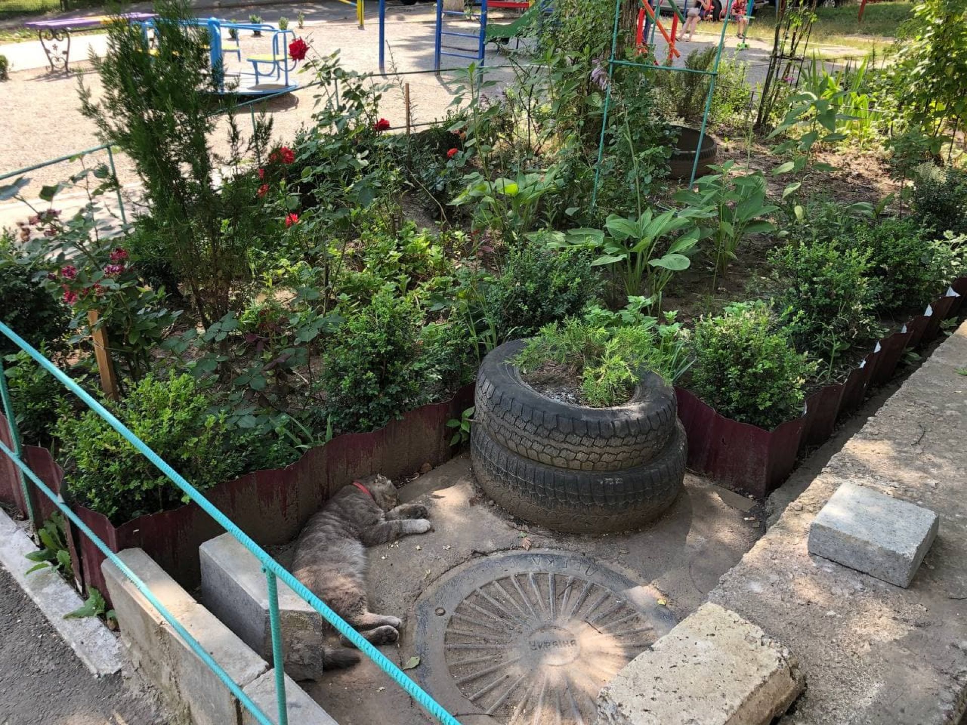 Продавчиня магазину, який в будинку, каже, що справа не в клумбах. За її словами, жінка з чотирма собаками близько години часу перебуває на дитячих майданчиках. А саме пси сидять на гойдалці й пісочниці та з’їжджають з гірок.