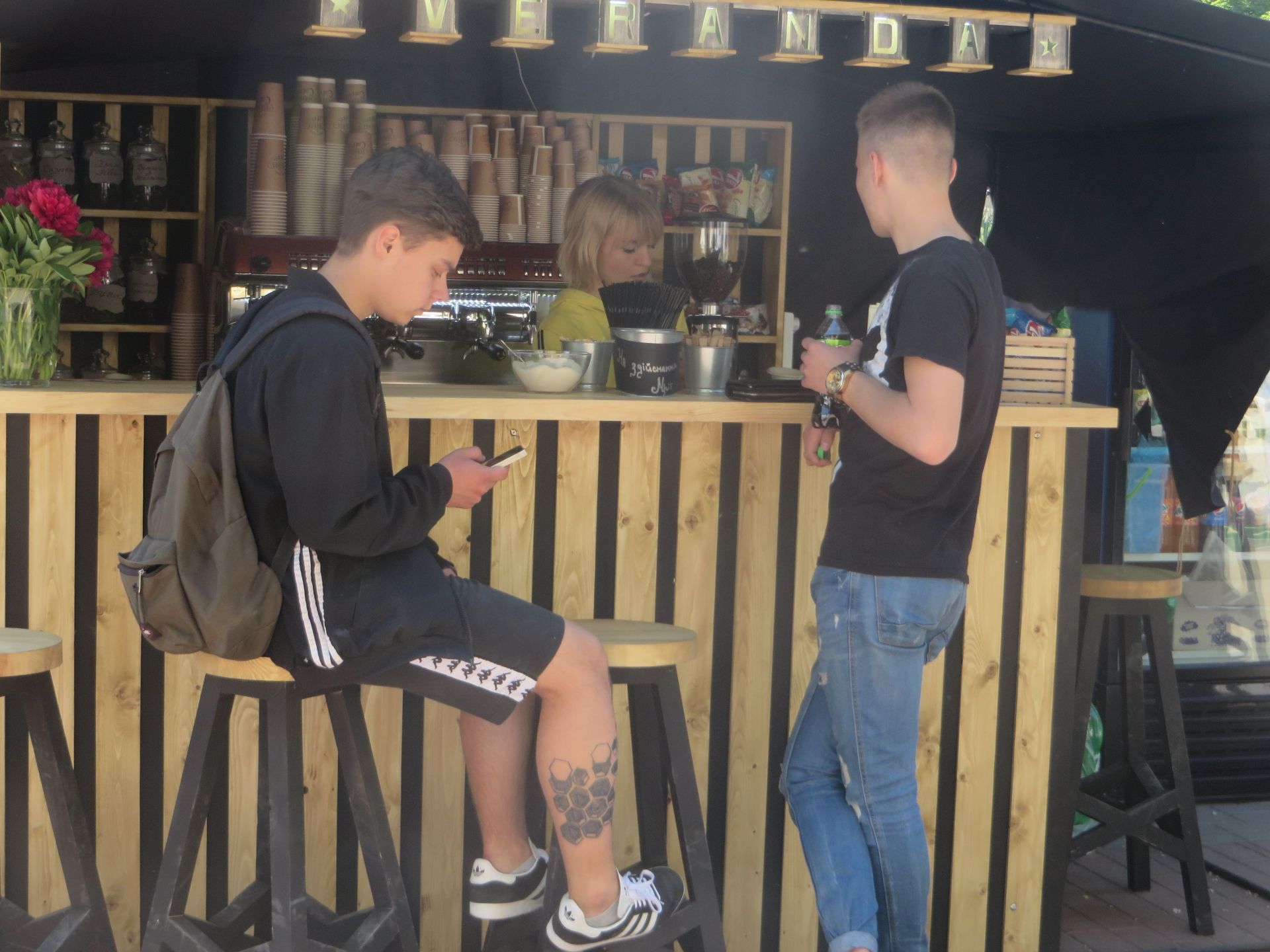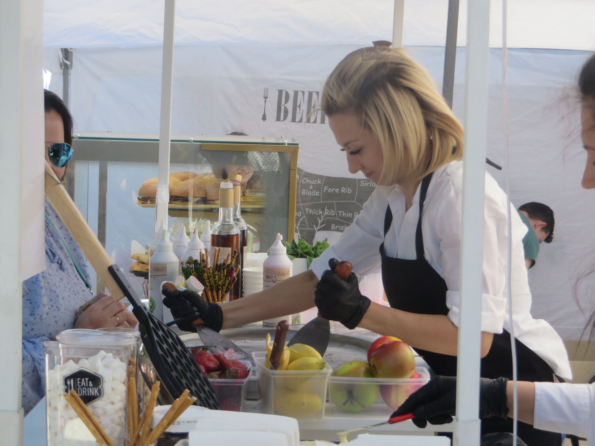 - Поблизу кінотеатру Шевченка розташувався фуд-корт. Там хмельничани куштували смачну каву, смажене морозиво і вишукані тістечка.