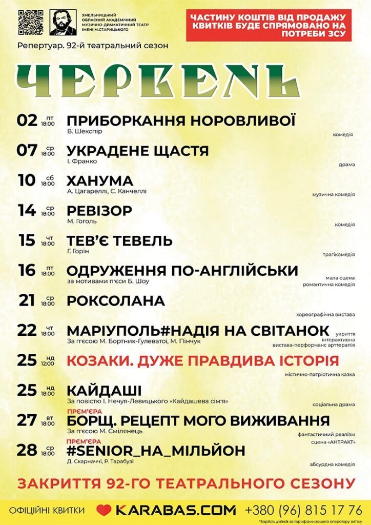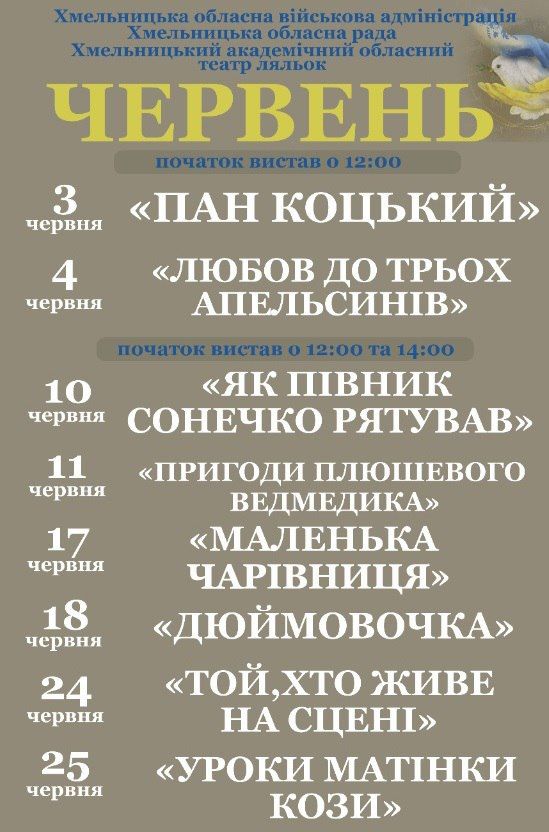 Що показують у театрах Хмельницького в червні: вистави, сеанси та ціни