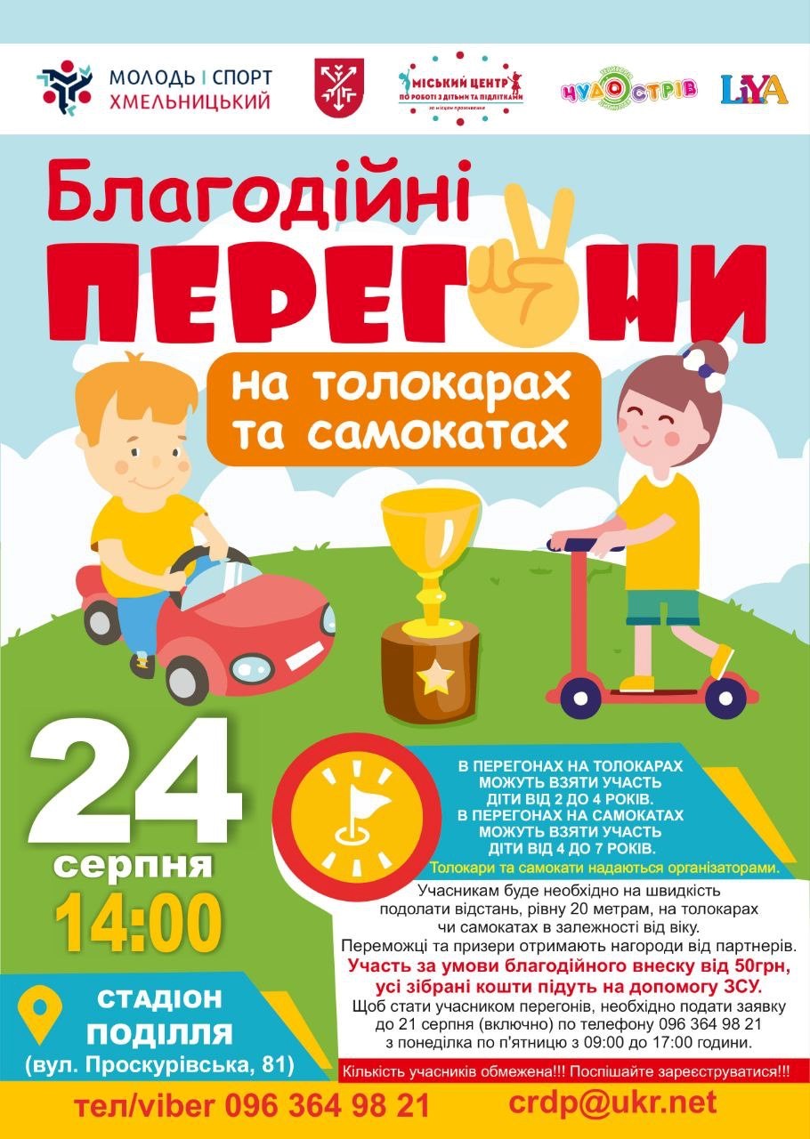 Майже щоліта в обласному центрі проводять дитячі перегони на толокарах та самокатах. Не став виключенням і 2024-й. Перегони проходитимуть наприкінці серпня. Організовують їх управління молоді та спорту та Центр по роботі з дітьми та підлітками.