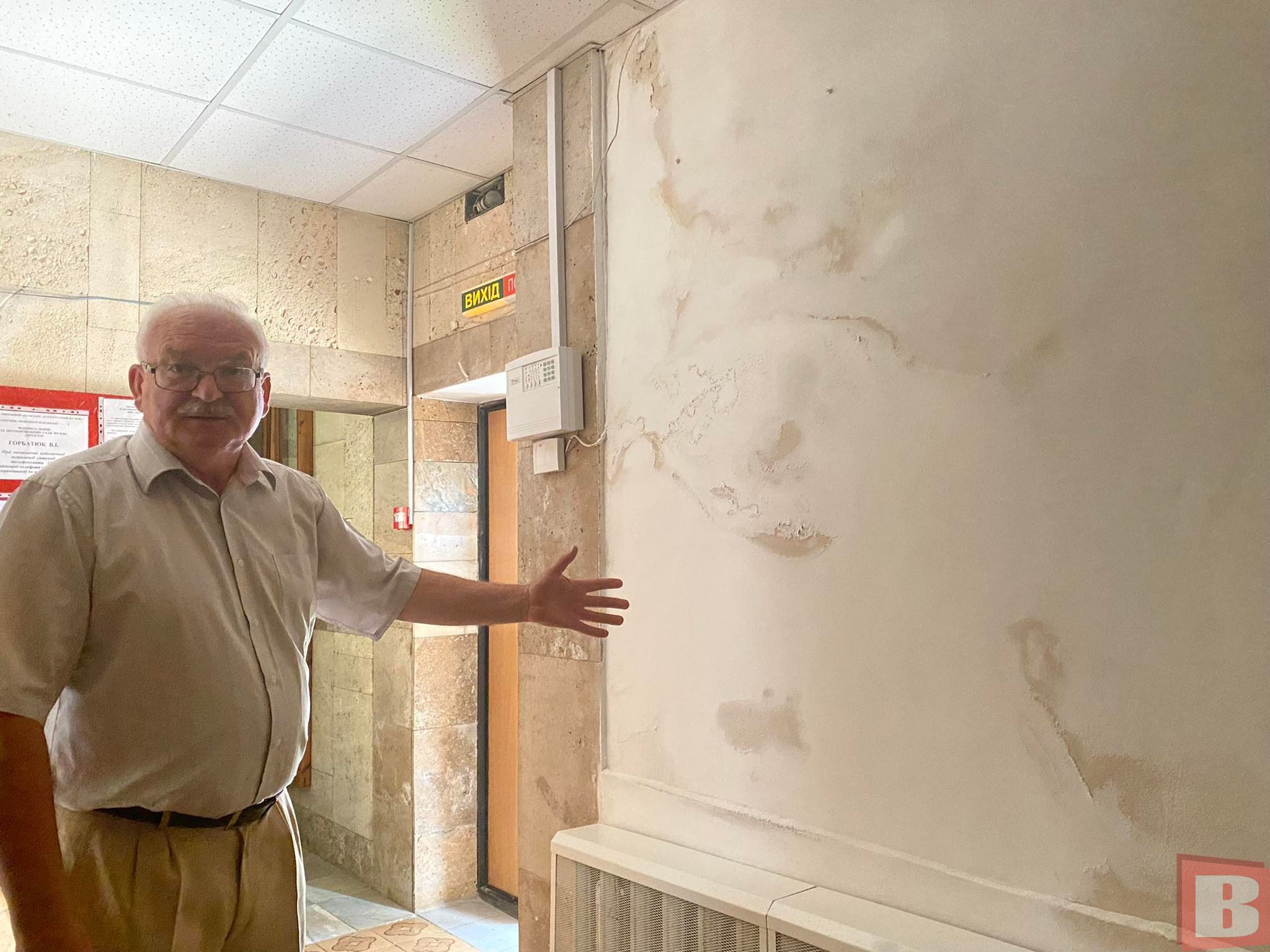 А от стан будівлі всередині залишає бажати кращого. Цвіль на відкосах старих вікон, підлога, яка “набрякає” й тріщини на стінах. Все це демонструє директор закладу. Говорить, капітального ремонту музей не бачив вже 30 років. Увесь цей час влада виділяла гроші лише на поточний ремонт.