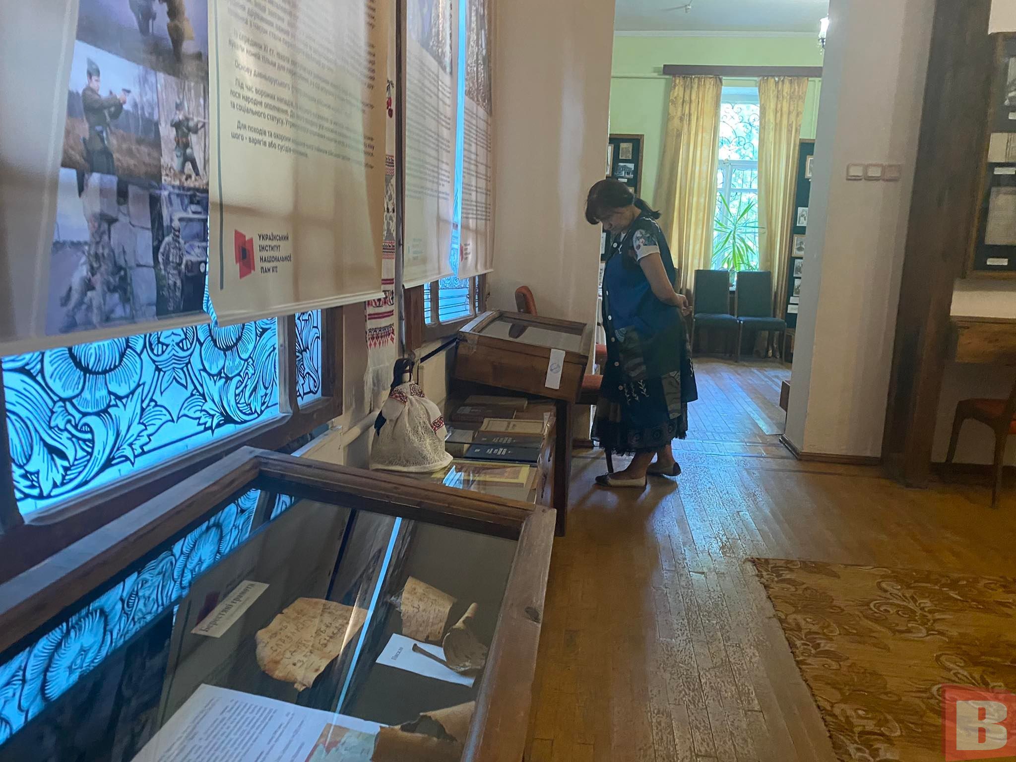 Журналістка vsim.ua навідалася в літературний музей, аби дізнатися, що там є і як все виглядає зсередини. У закладі представлені три зали. Там можна побачити старі рукописи, книги, монографії і навіть речі українських письменників. Наприклад, друкарську машинку, що належала письменнику Миколі Мачківському. Є у музеї й унікальні речі. Це требник (церковна книга, - прим. автора) 1761 року. Також представлені берестяні грамоти та старе писало.
