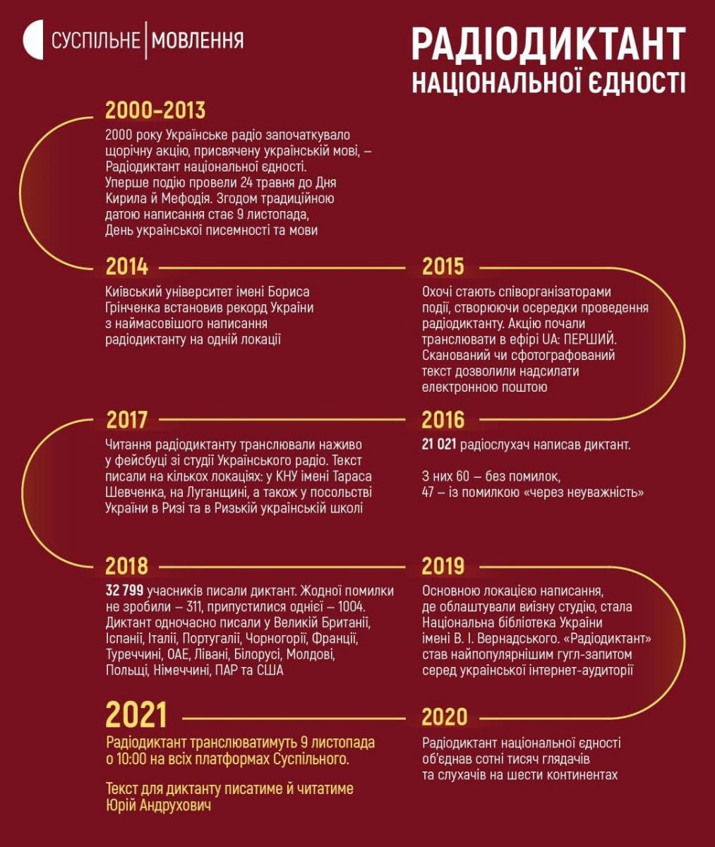 — Разом з тисячами українців в різних куточках світу ми напишемо Всеукраїнський радіодиктант національної єдності. Долучайся!!! Зараз, як ніколи нам потрібна єдність, — додають в центрі.