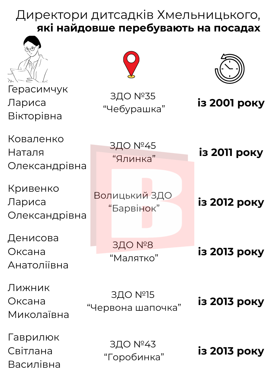 Хто ще із директорів найдовше очолює дитячі садки Хмельницького – дізнавайтеся в інфографіці далі.