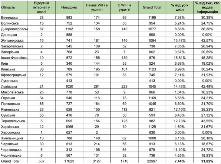- Дізнавайтеся, скільки шкіл області досі без інтернету, а в яких навіть в укриттях є WiFi.