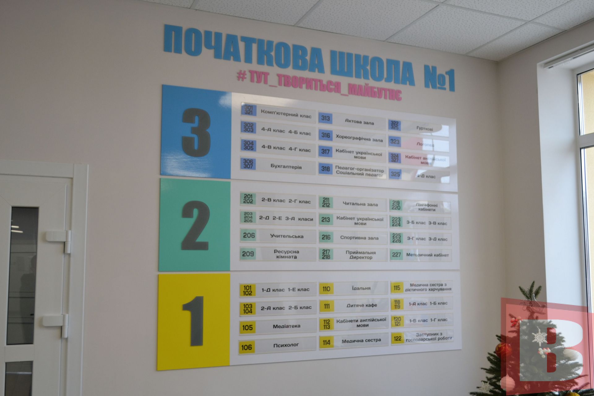 Додамо, що в новій початковій школі буде до сотні працівників. Заклад має три поверхи. На другий та третій можна діставатися як сходами, так ліфтами, яких у будівлі налічується два. Окрім класних кімнат, у школі є комп’ютерні класи, лінгафонні кабінети, актова, спортивна та хореографічна зали, кабінети гуртків, бібліотека, медіатека, їдальня, дитяче кафе та медичний блок.