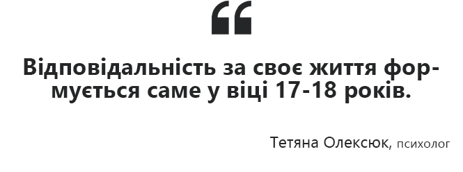 Говорить психолог і про активну участь батьків у життєвій долі їхніх чад. Йдеться про вказівки - де навчатися та який фах обрати. За словами пані Тетяни, дорослі не усвідомлюючи перекладають свій досвід на дитину. При цьому керуються тим, що вони краще знають, як потрібно жити. У такий спосіб, каже фахівець, батьки забирають в дітей відповідальність за своє життя й можливість самостійно зробити крок у майбутнє. Стосовно цього Тетяна Олексюк має поради і для дорослих, і для їхніх дітей-абітурієнтів.