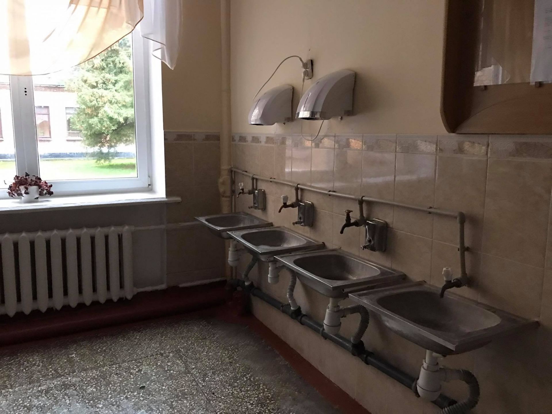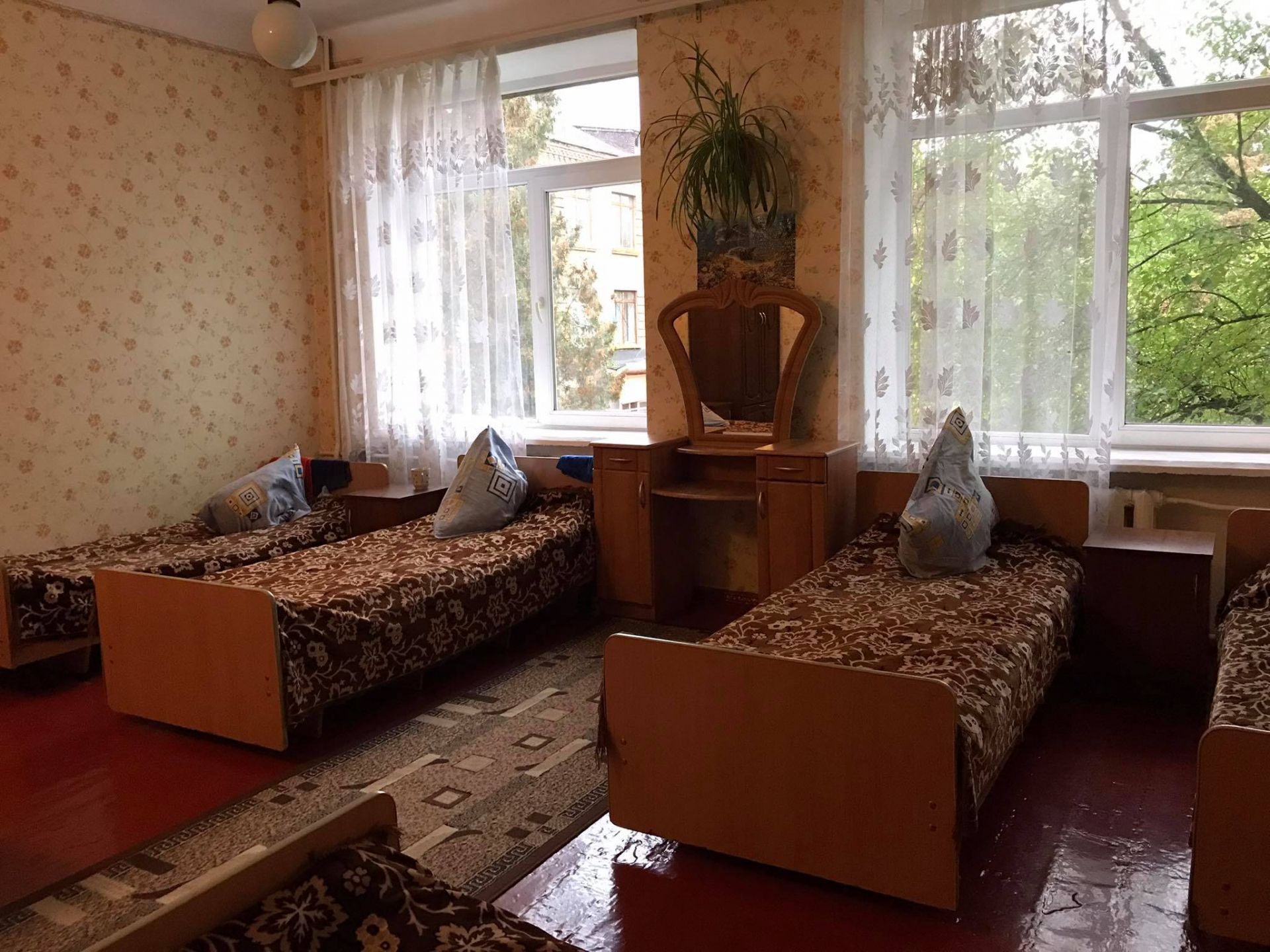 У кожній із таких зон є свій санвузол. Встановлені нові вбиральні. Це помітно по свіжому ремонту. В самих кімнатах шафа, туалетний столик, дзеркало та 6 ліжок. Директорка пояснила, що така кількість залишилися від старих часів. Мовляв, насправді як і зазначалося вище, в кімнатах живуть по четверо.