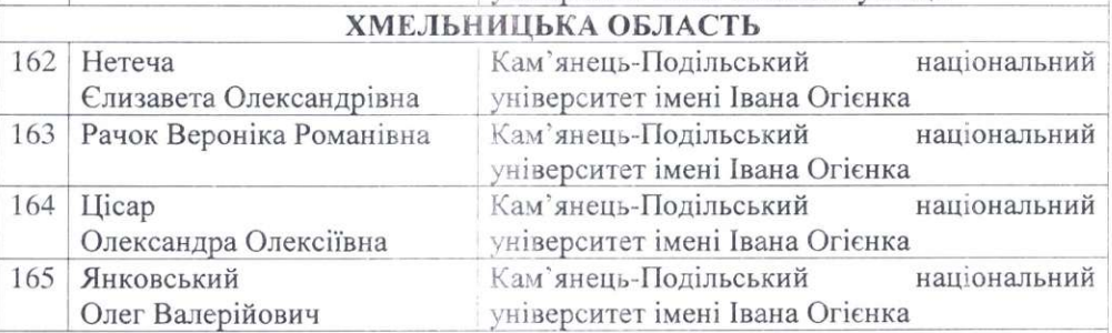 А от у списку на президентську стипендію 254 особи. Серед них — четверо студентів Кам’янець-Подільського національного університету імені Огієнка: