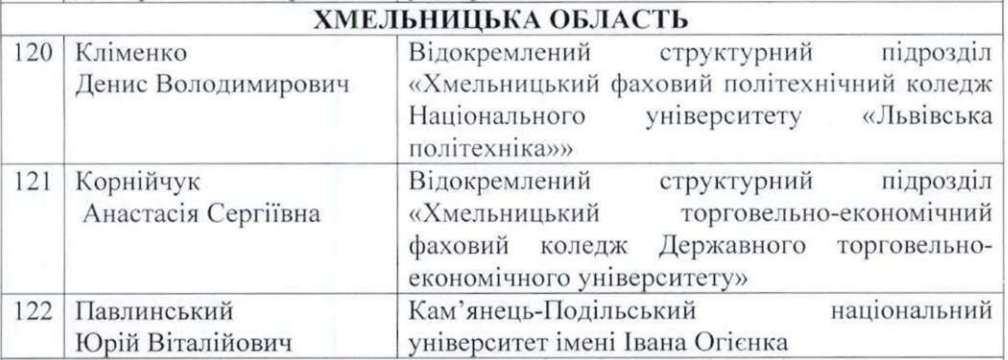 У списку стипендіатів від Верховної Ради 172 студенти. Двоє із них навчаються в хмельницьких коледжах, а один студент із Кам’янецького вишу: