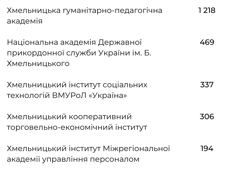 Складаємо рейтинг найкращих вишів Хмельниччини (ІНФОГРАФІКА, ГОЛОСУВАННЯ)