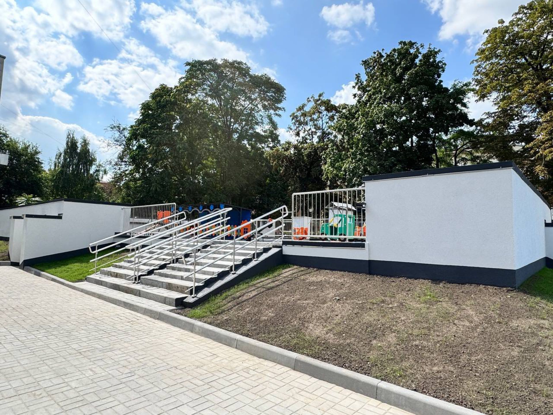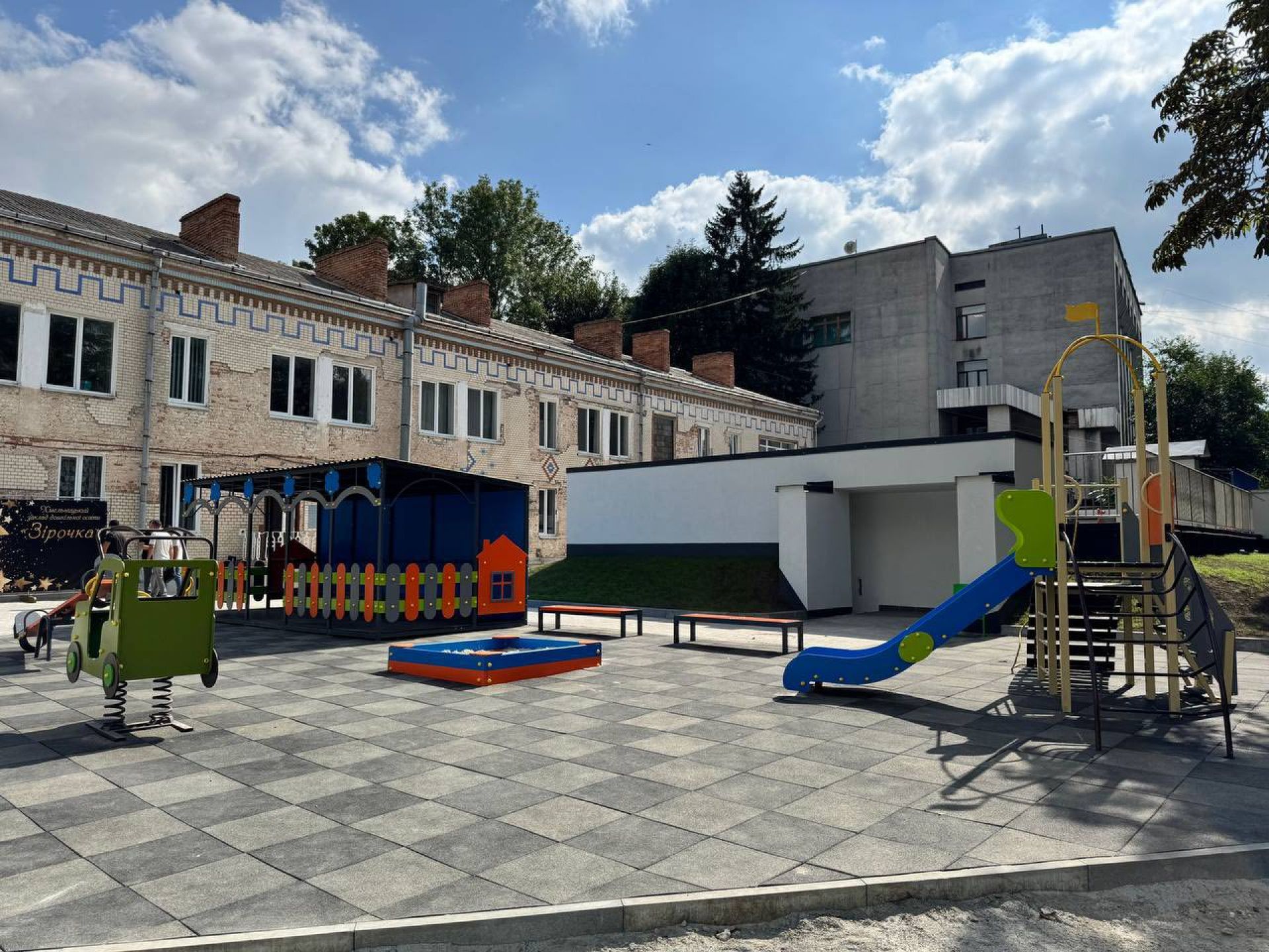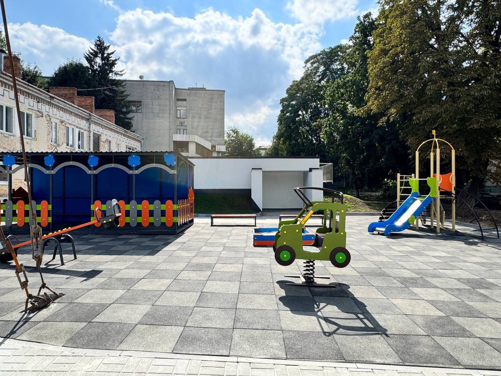 Над укриттям облаштували новий сучасний дитячий майданчик.